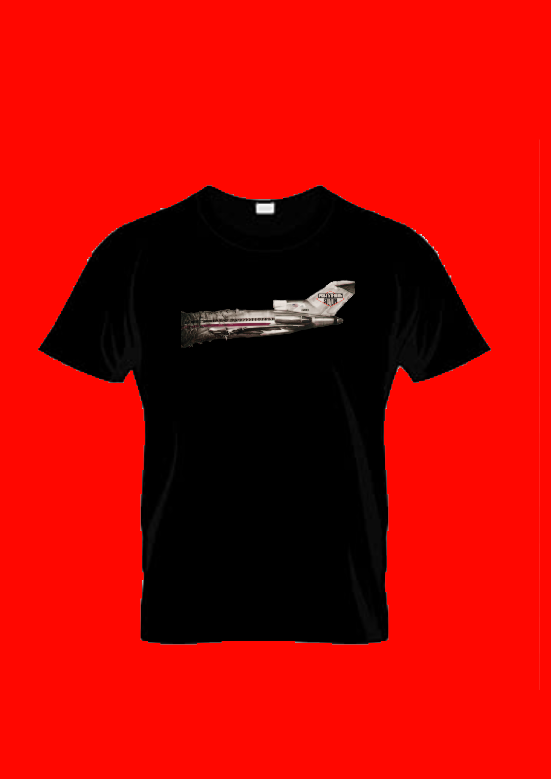 Graphic: Detailed airplane fuselage with “Rhymin n Stealin” branding on the tail fin